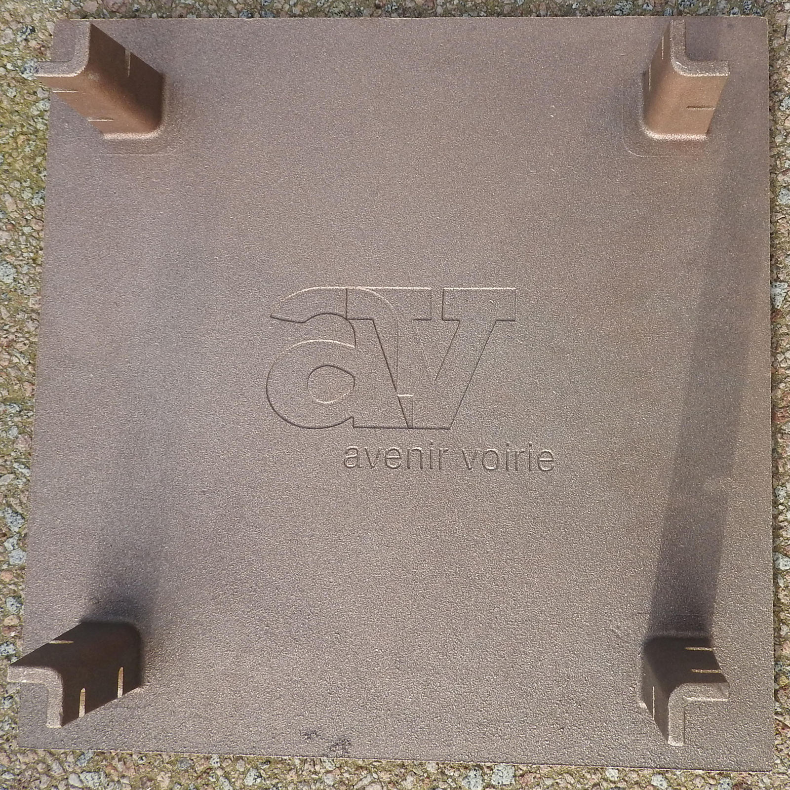 Réf. : PL-PIET-BPlaque en Bronze avec Logo Pièton 300x300mm - épaissseur 7mm avec chanfrein de 45° - pattes de scellement intégrées - poids 6kg - Modèle Déposé ©